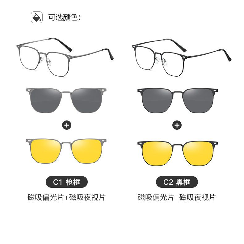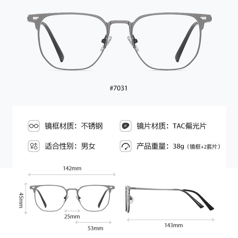 Metal Blue Ray Cut protection frame + 2 magnet sunshade clip-ons 7031-GT