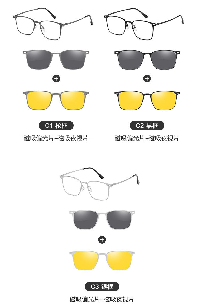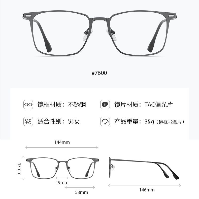 Metal Blue Ray Cut protection frame + 2 magnet sunshade clip-ons 7600-GT