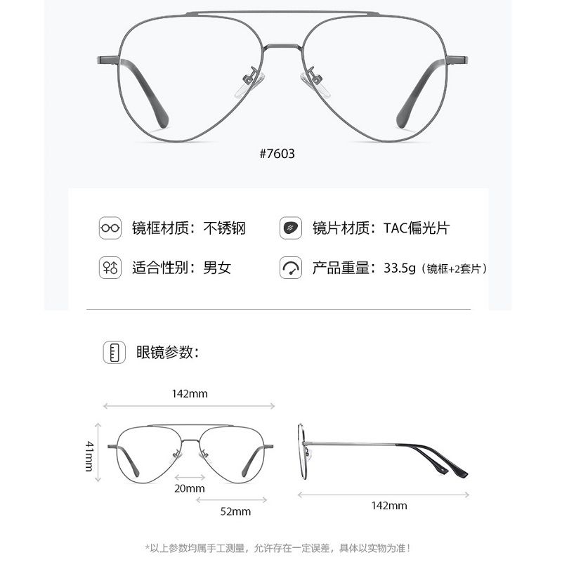 Metal Blue Ray Cut protection frame + 2 magnet sunshade clip-ons 7603-GT