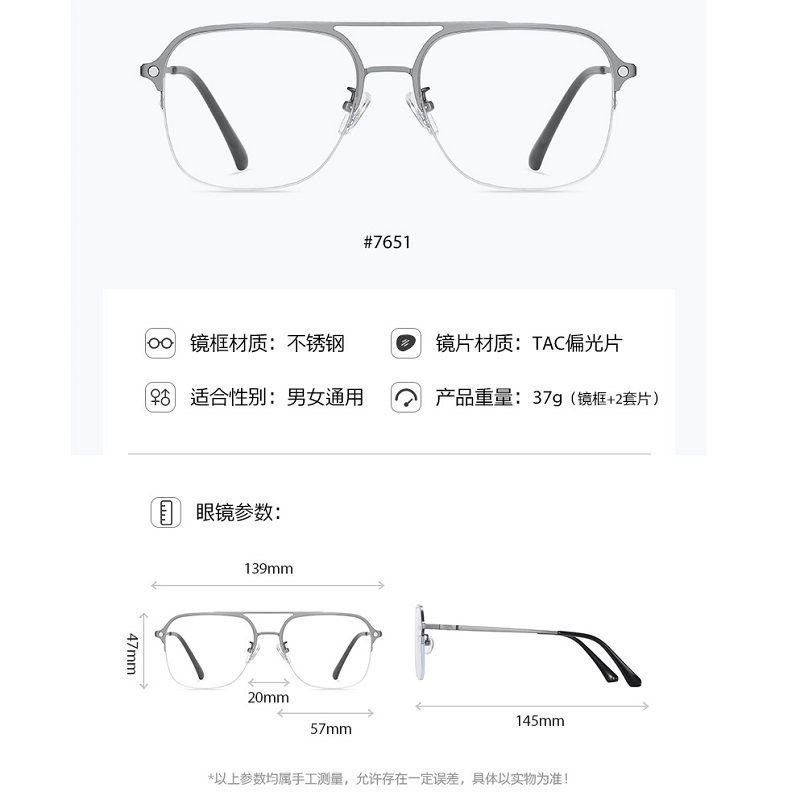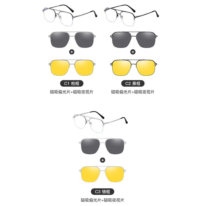 Metal Blue Ray Cut protection frame + 2 magnet sunshade clip-ons 7651-GT