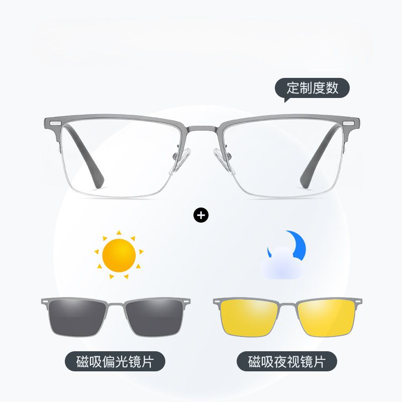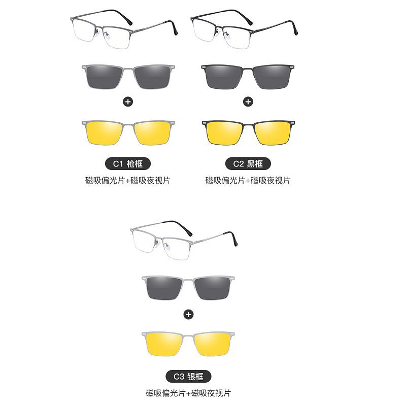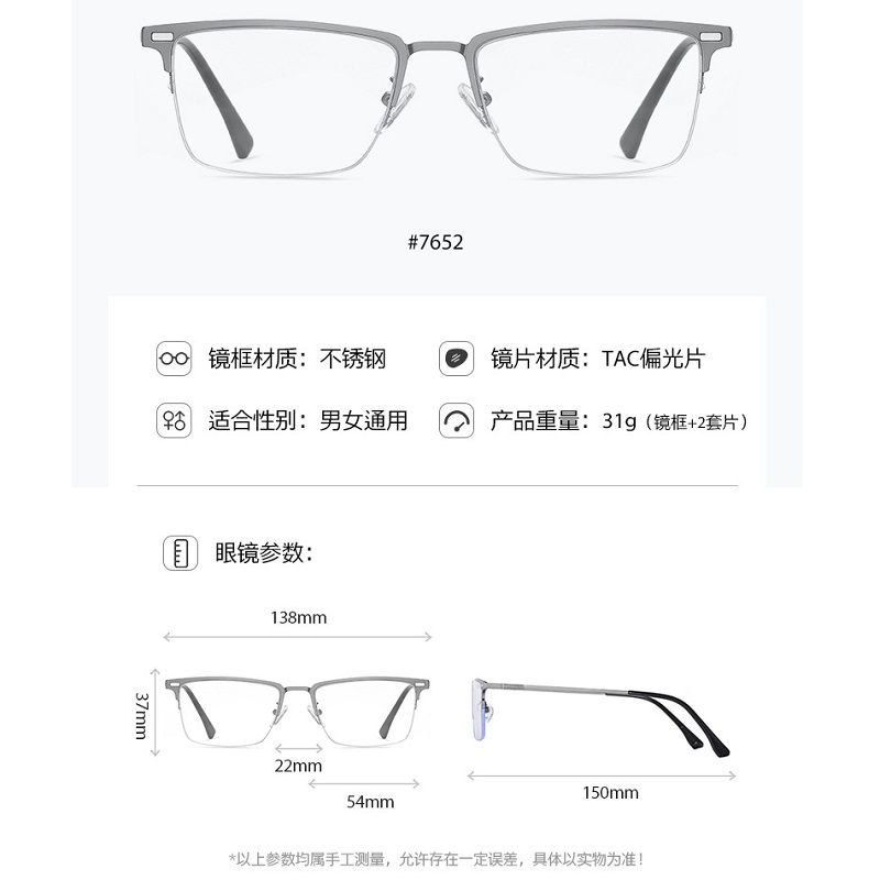 Metal Blue Ray Cut protection frame + 2 magnet sunshade clip-ons 7652-GT