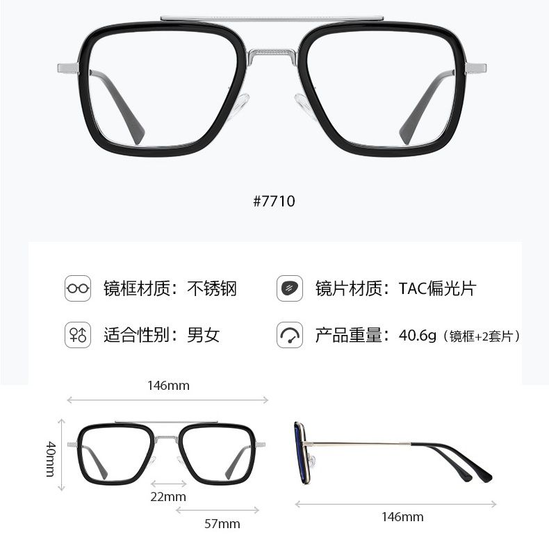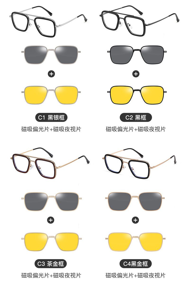 Combined metal + plastic Blue Ray Cut protection frame + 2 magnet sunshade clip-ons 7701-GT