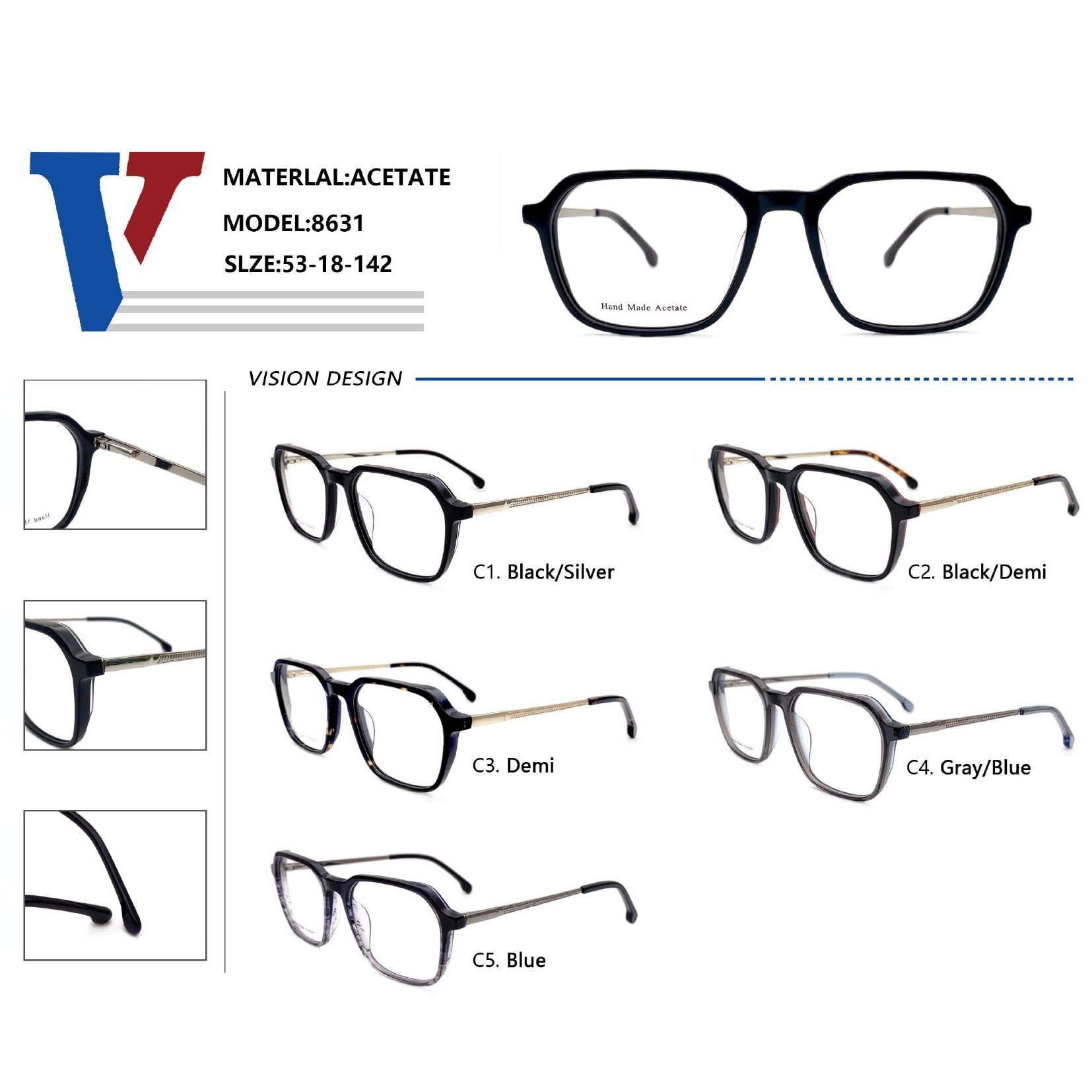 - Frame material: acetate plastic, metal