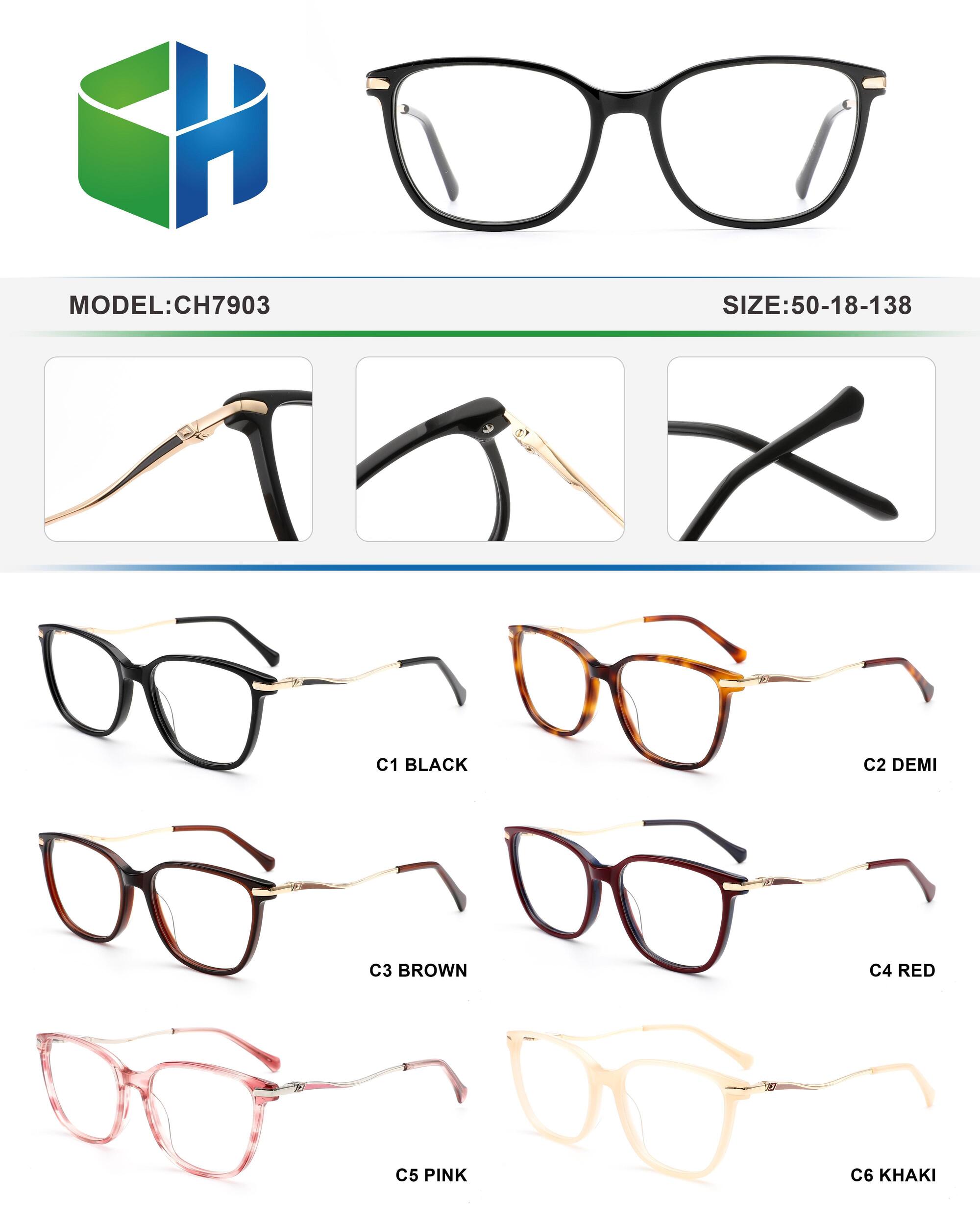 Plastic acetate frame for women with spring hinges CH7903-DA