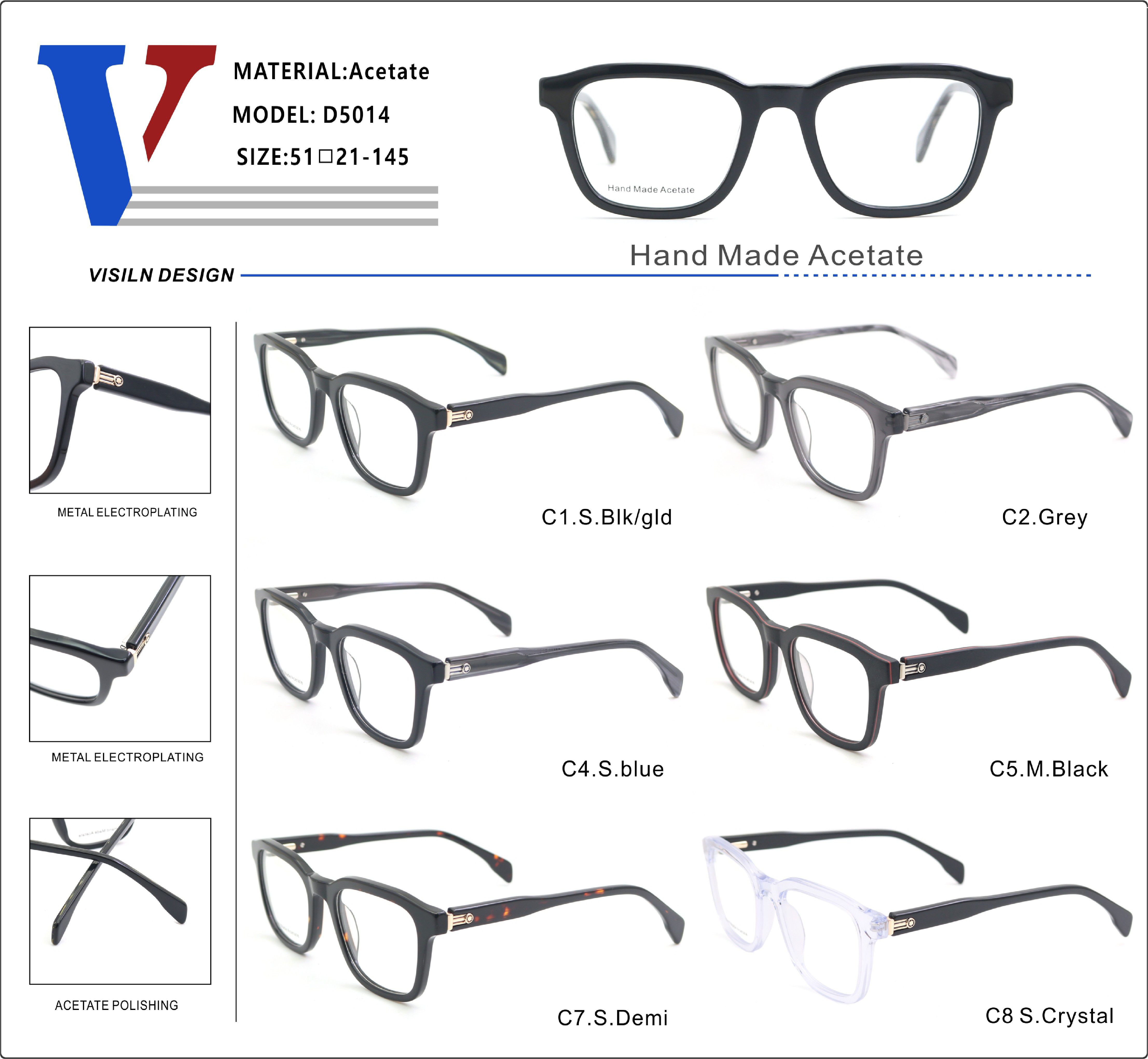 Plastic acetate frame with spring hinges D5014-DA