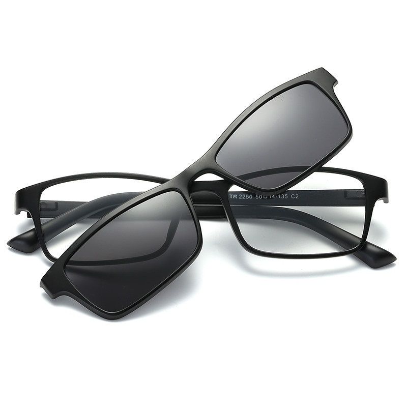 Clip-on frames are a universal solution for people who need to constantly change their glasses when moving from indoors to outdoors and back. The clip-on is a removable element with dark lenses that is easily attached to the main frame using magnets or special fasteners. This allows you to quickly convert regular glasses into sunglasses, providing comfort and protection in any conditions.