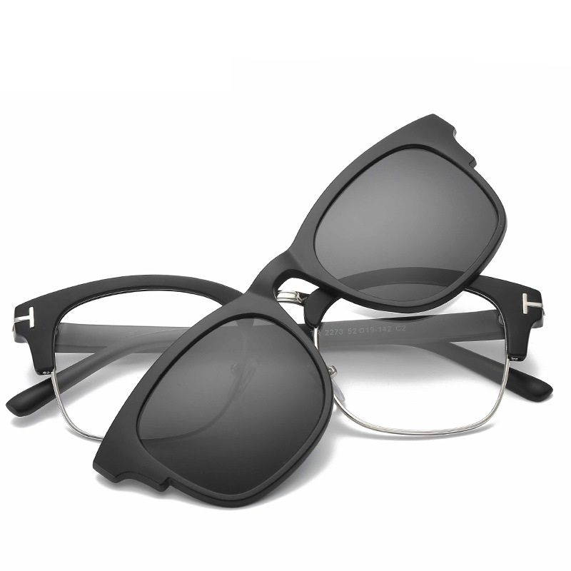 Clip-on frames are a universal solution for people who need to constantly change their glasses when moving from indoors to outdoors and back. The clip-on is a removable element with dark lenses that is easily attached to the main frame using magnets or special fasteners. This allows you to quickly convert regular glasses into sunglasses, providing comfort and protection in any conditions.