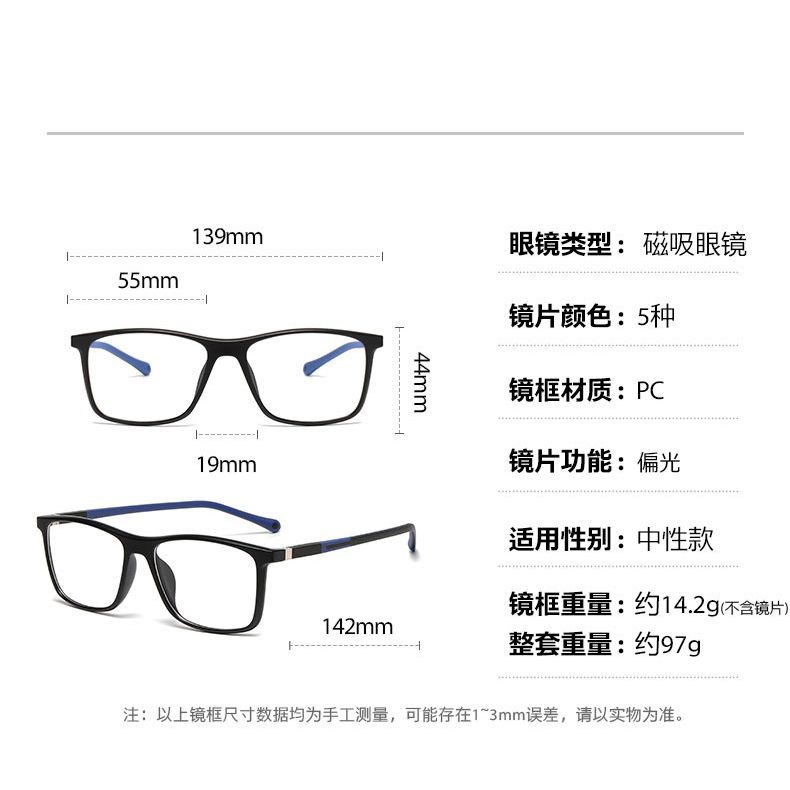 - Frame material: TR90 plastic / PC plastic (optional), metal