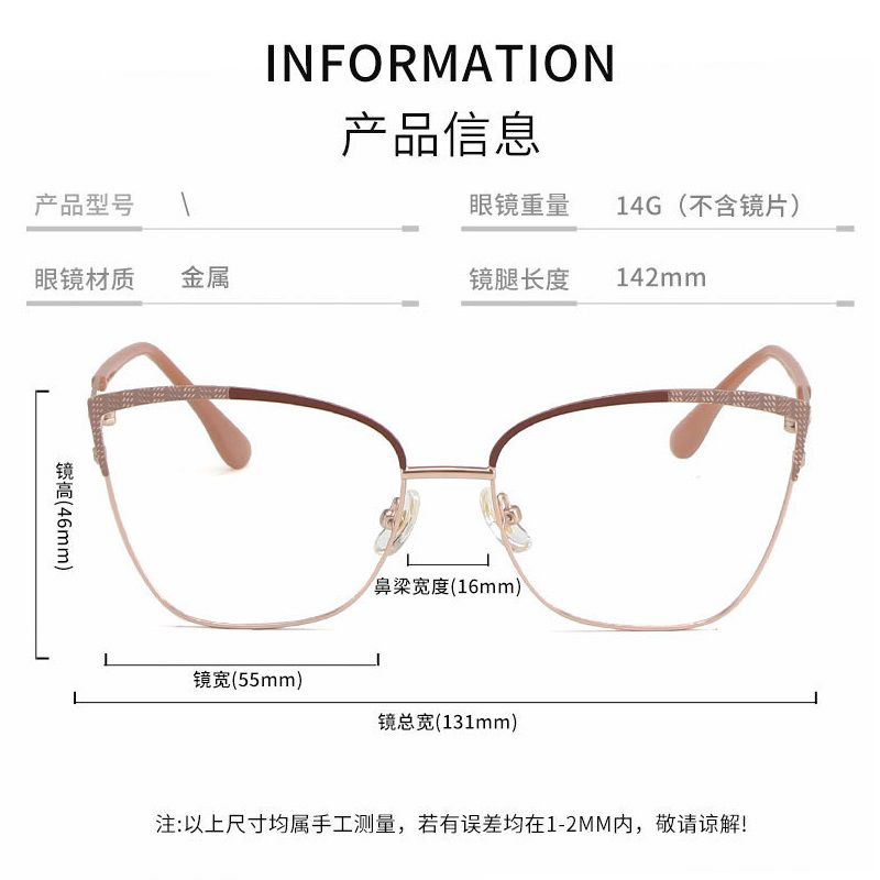 - Size: lens width - 55 mm, bridge - 16 mm, temple - 143 mm