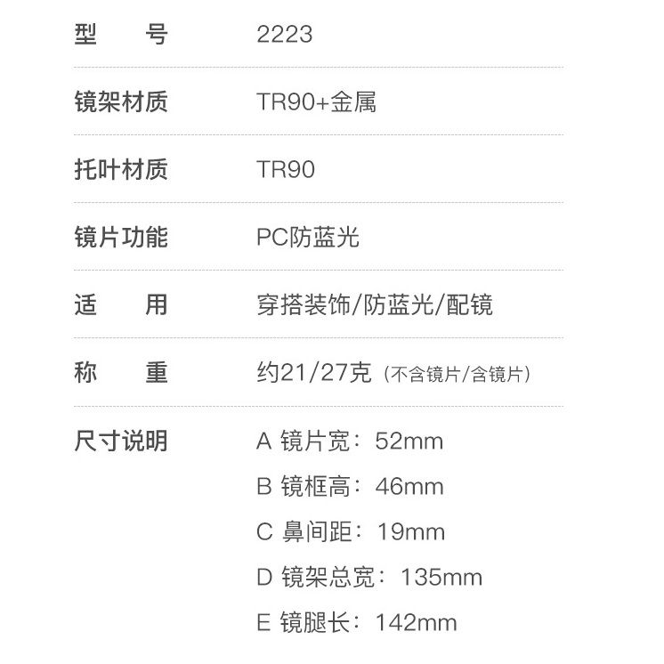- Frame material: TR90 plastic