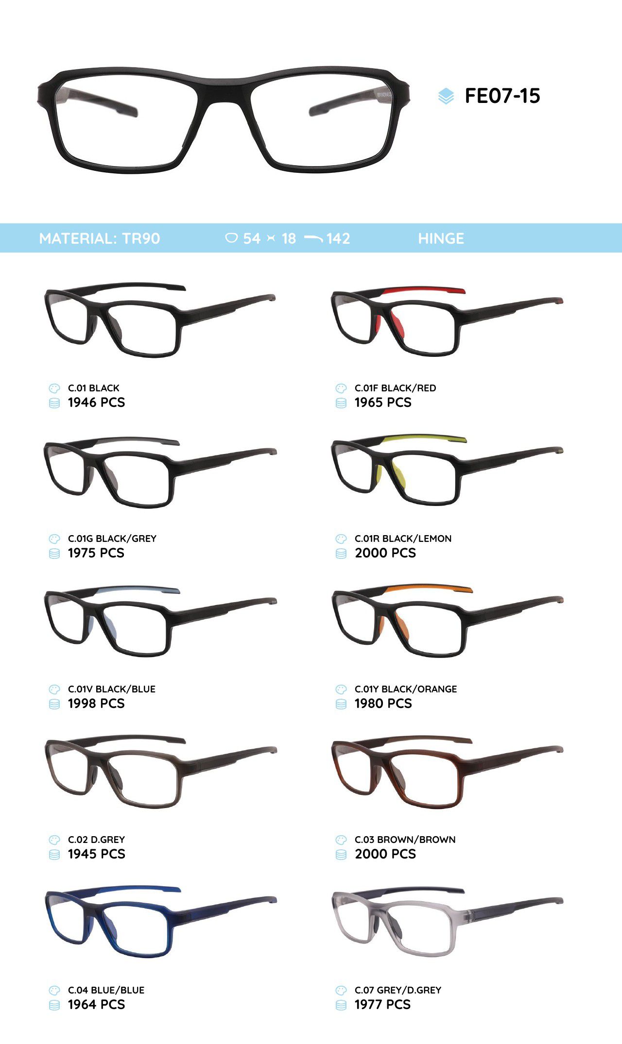 - Frame material: TR-90 plastic, silicone, metal