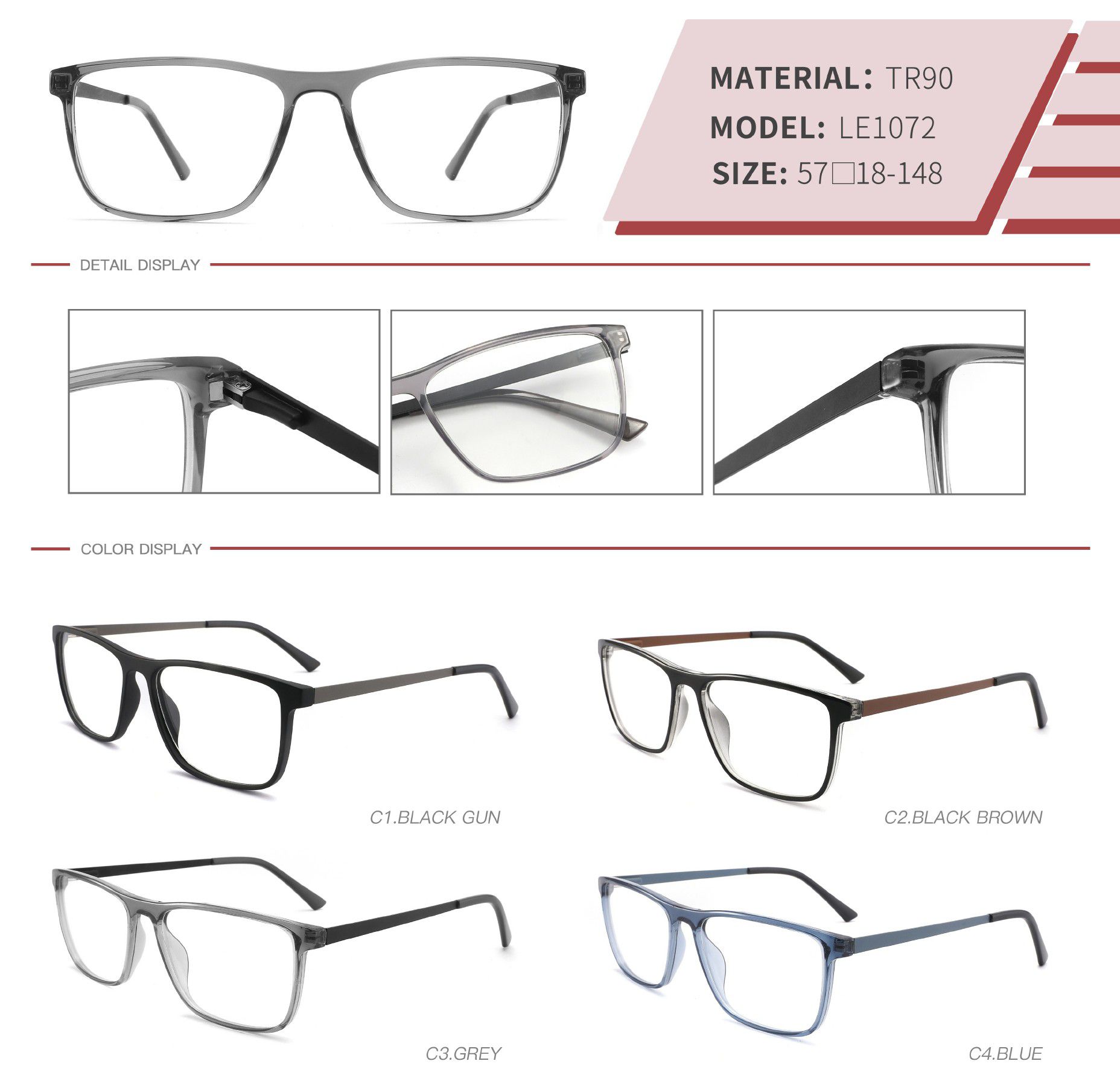 - Frame material: plastic TR90