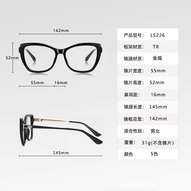 - Size: lens width - 55 mm, bridge - 16 mm, temple length - 145 mm