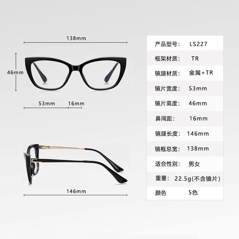 - Frame material: TR90 plastic + metal