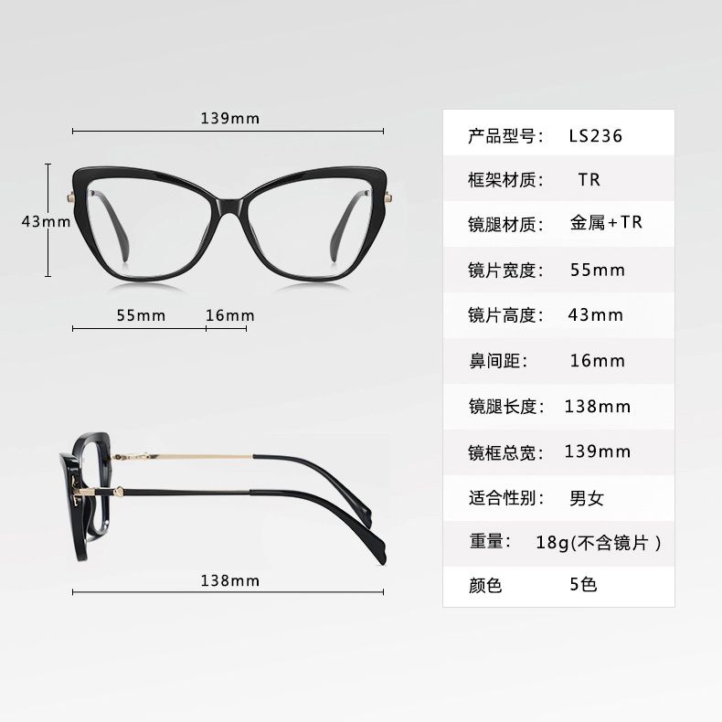 Plastic women's TR90 frame for glasses with UV and Blue Ray Cut protection More LS236