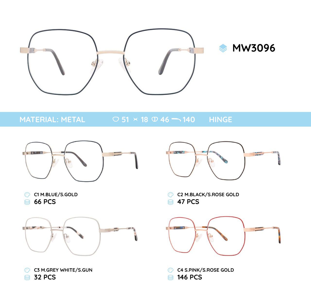 Metal women's frame for glasses MW3096