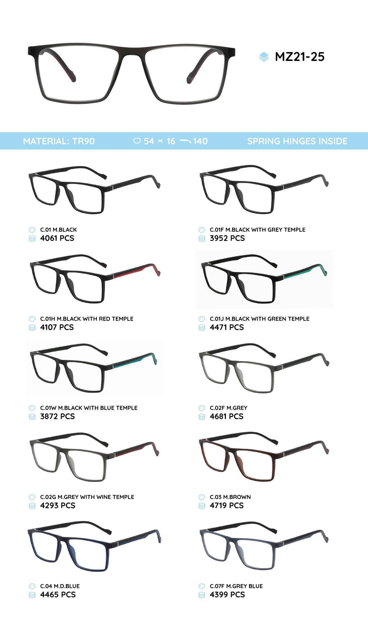 TR-90 plastic frames for glasses, with spring hinges MZ21-25