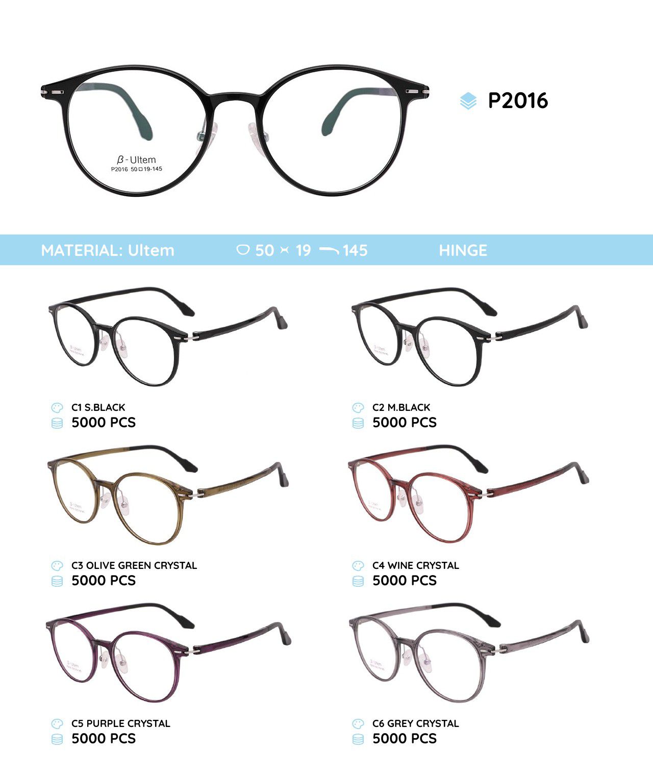 Plastic Ultem eyeglasses frame P2016