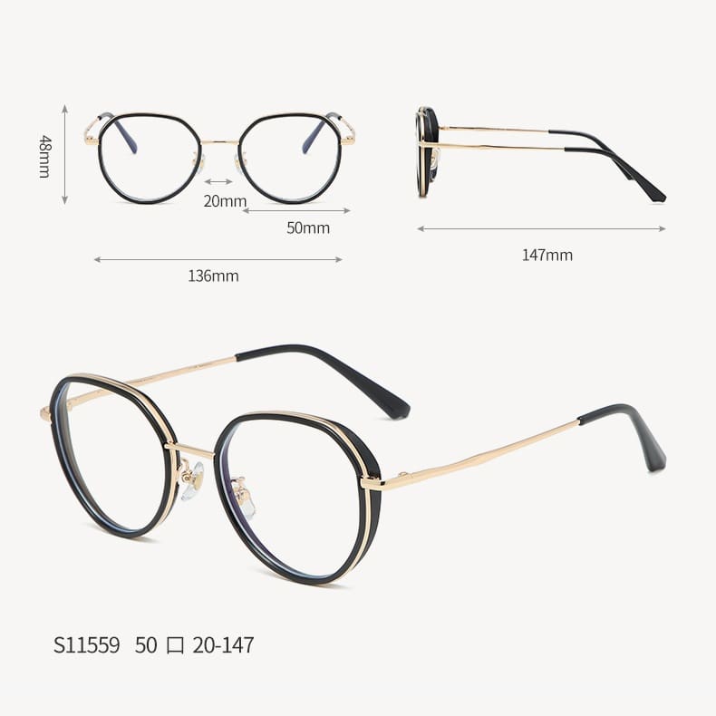 - Frame material: titanium alloy, TR90 plastic