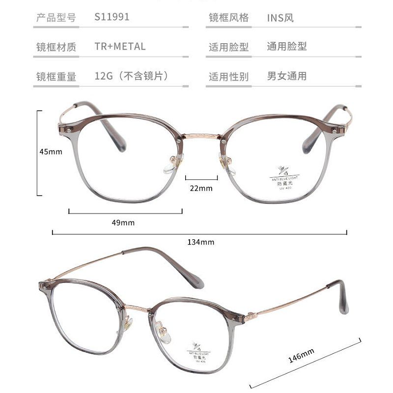 Combined frame (metal + TR90) with Blue Ray Cut protection lenses MAMO S11991