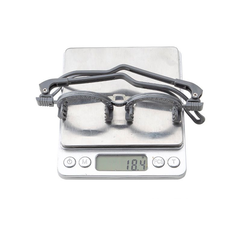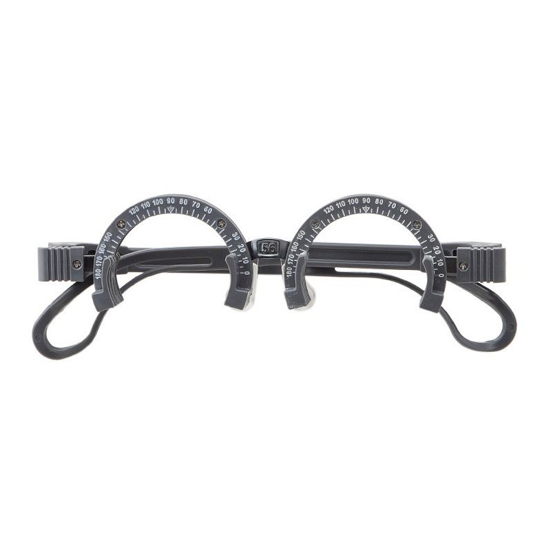 The frame is designed for the installation of astigmatic and stigmatic test eyeglass lenses, prisms, prism compensators, as well as filters, diaphragms and other optical elements. To determine the direction of astigmatism and squint, the frame is equipped with an angular scale. The rotation of lenses, prisms and other optical elements relative to the scale is carried out using a lens holder. The intercenter distance is changed separately, while the value is counted from the center of the nose in the range from 52 to 70 mm.