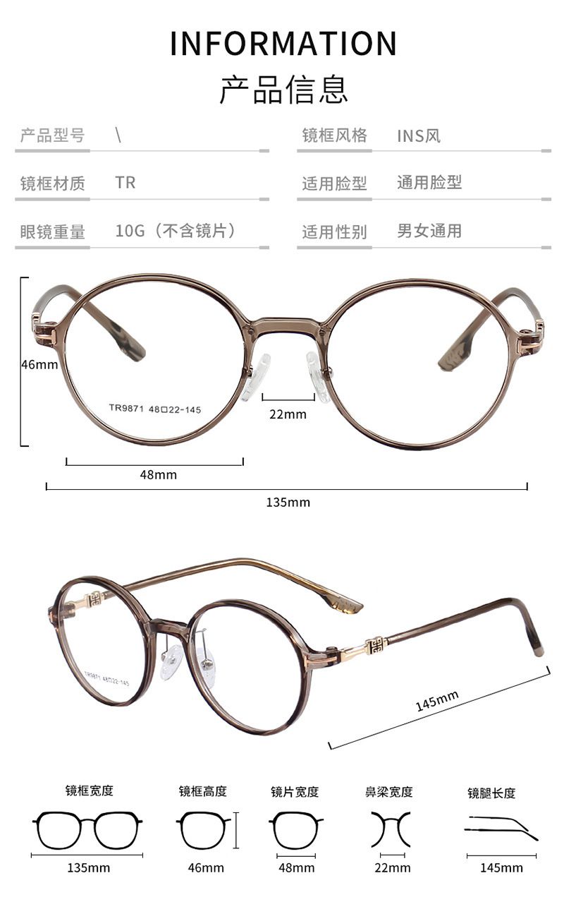 - Size: lens width - 48 mm, bridge - 22 mm, temple - 145 mm
