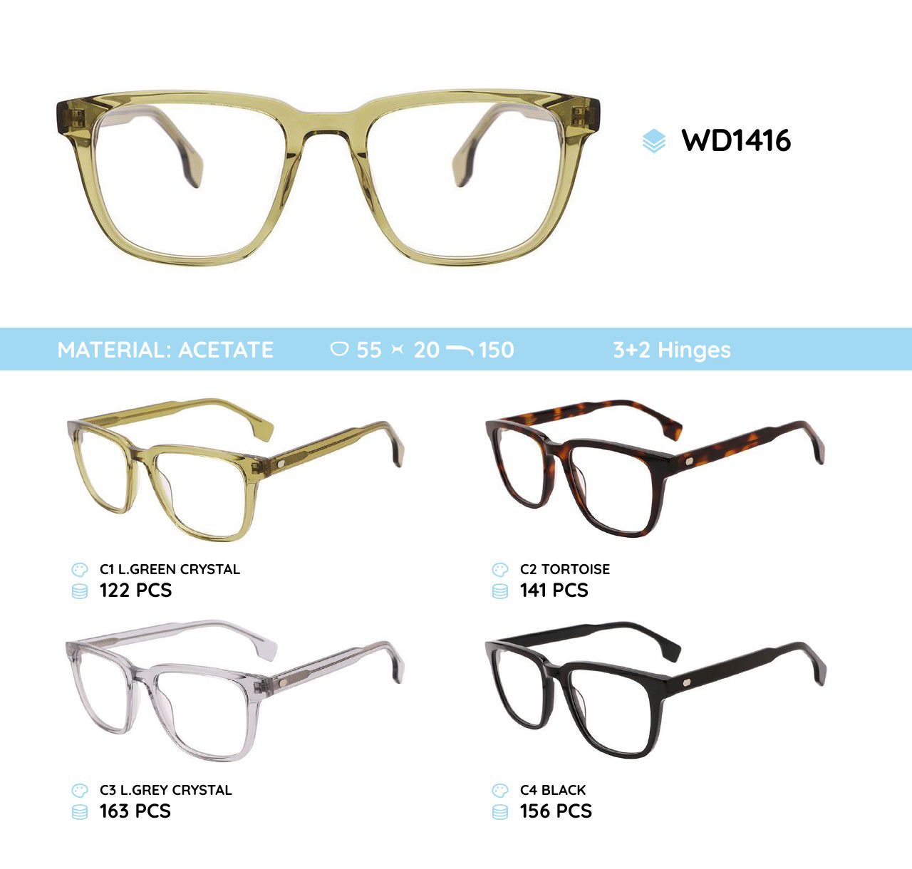 Glasses frames are plastic, acetate, milled. The frames hold their shape well, at the same time are flexible in use when making glasses, are of high quality, have pleasant tactile properties, are resistant to damage, are lightweight, and have hypoallergenic properties. Many models are decorated with rhinestones, with elegant temples and flex hinges. Fashionable design. This collection of high quality frames is individually controlled. Our store offers a low price for goods in this category for wholesale. CE standard (European Conformity).