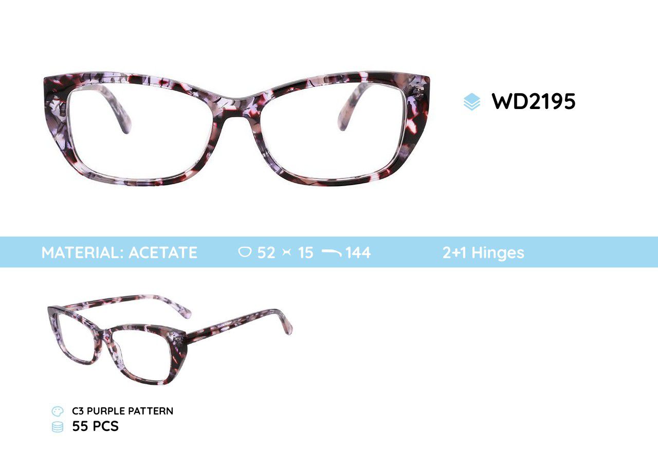 Glasses frames are plastic, acetate, milled. The frames hold their shape well, at the same time are flexible in use when making glasses, are of high quality, have pleasant tactile properties, are resistant to damage, are lightweight, and have hypoallergenic properties. Many models are decorated with rhinestones, with elegant temples and flex hinges. Fashionable design. This collection of high quality frames is individually controlled. Our store offers a low price for goods in this category for wholesale. CE standard (European Conformity).