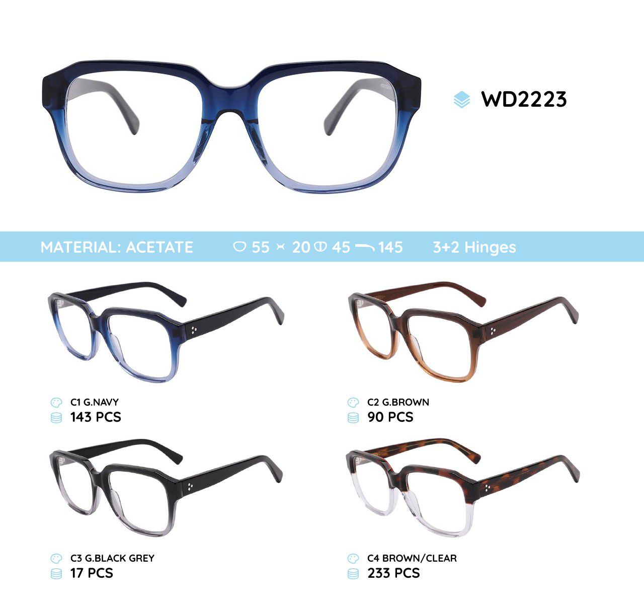 Glasses frames are plastic, acetate, milled. The frames hold their shape well, at the same time are flexible in use when making glasses, are of high quality, have pleasant tactile properties, are resistant to damage, are lightweight, and have hypoallergenic properties. Many models are decorated with rhinestones, with elegant temples and flex hinges. Fashionable design. This collection of high quality frames is individually controlled. Our store offers a low price for goods in this category for wholesale. CE standard (European Conformity).