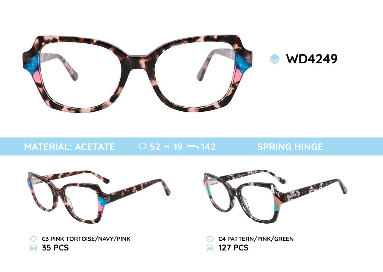 Glasses frames are plastic, acetate, milled. The frames hold their shape well, at the same time are flexible in use when making glasses, are of high quality, have pleasant tactile properties, are resistant to damage, are lightweight, and have hypoallergenic properties. Many models are decorated with rhinestones, with elegant temples and flex hinges. Fashionable design. This collection of high quality frames is individually controlled. Our store offers a low price for goods in this category for wholesale. CE standard (European Conformity).