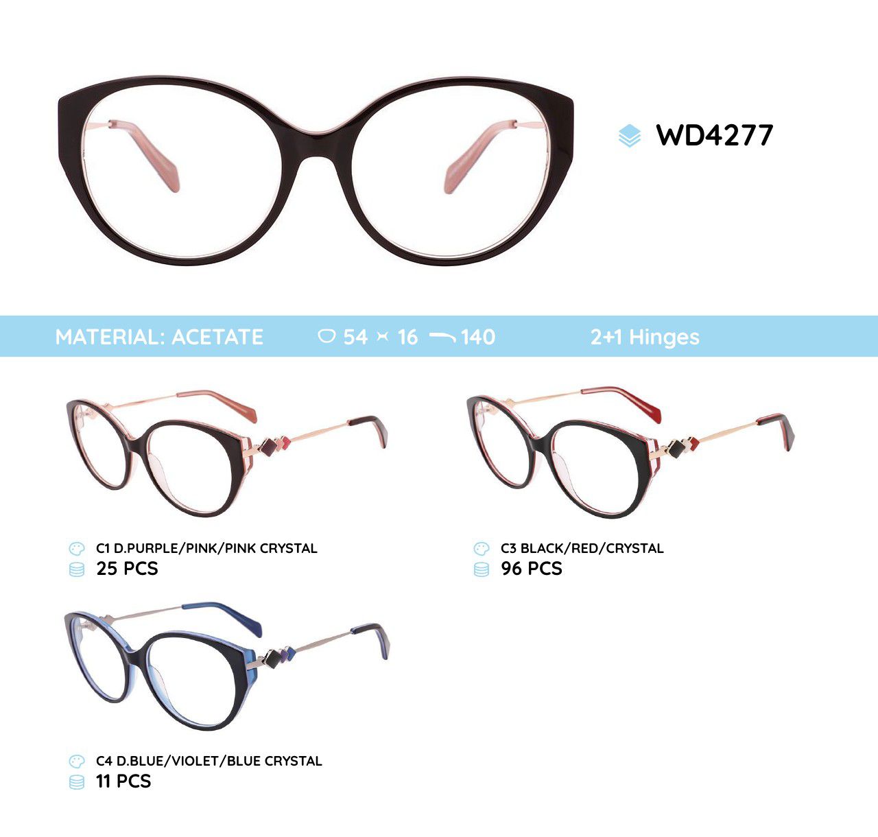 Plastic acetate eyeglasses frame for women WD4277