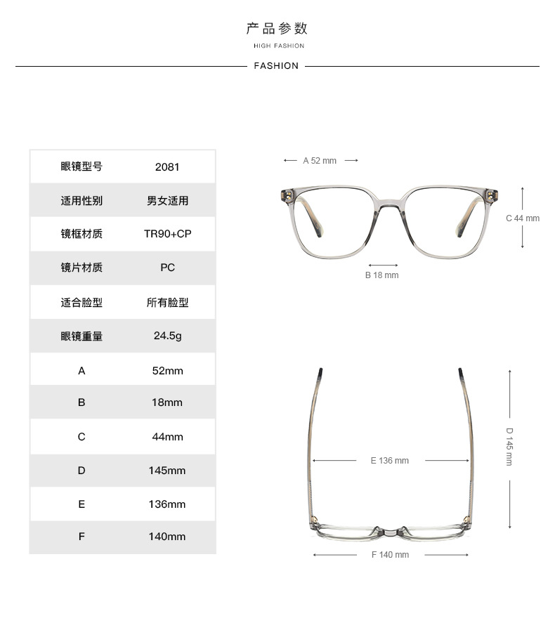 - Frame material: TR90 plastic