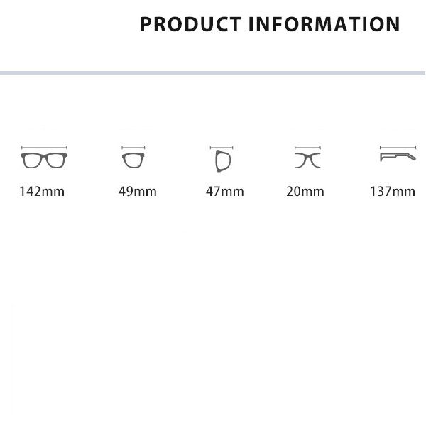 - Size: total width - 142 mm, lens width - 49 mm, lens height - 47 mm, bridge - 20 mm, temple length - 137 mm
