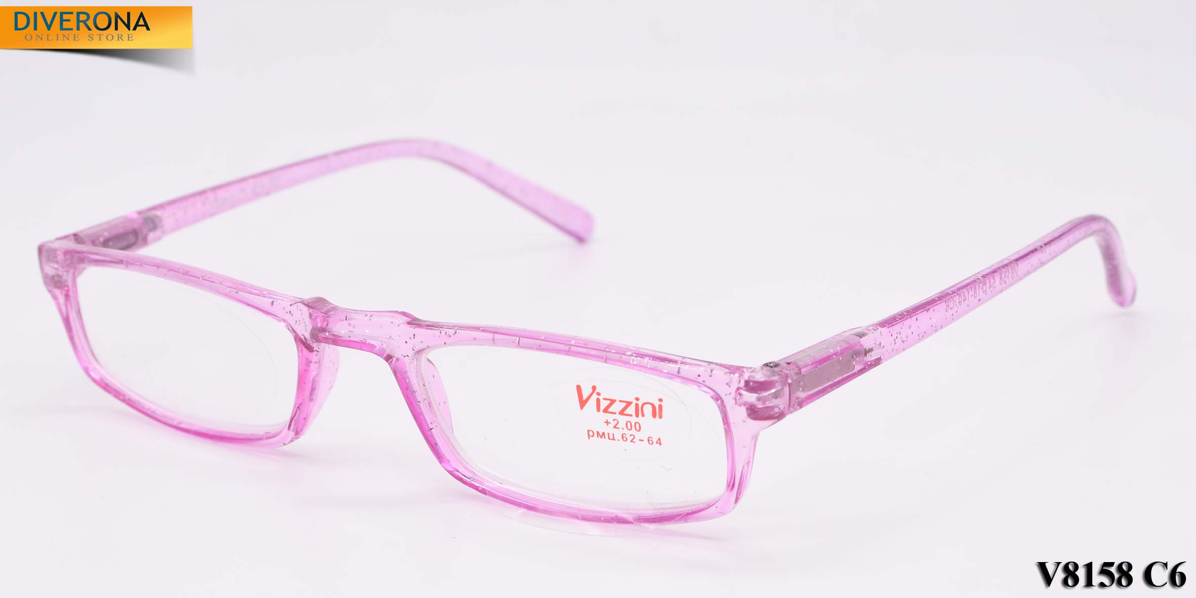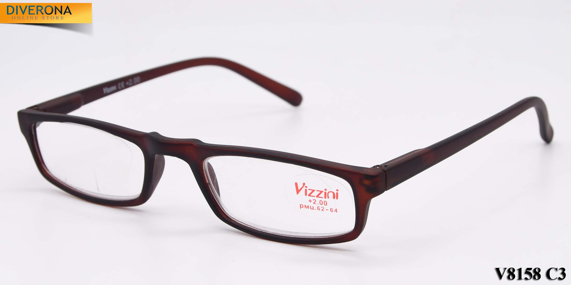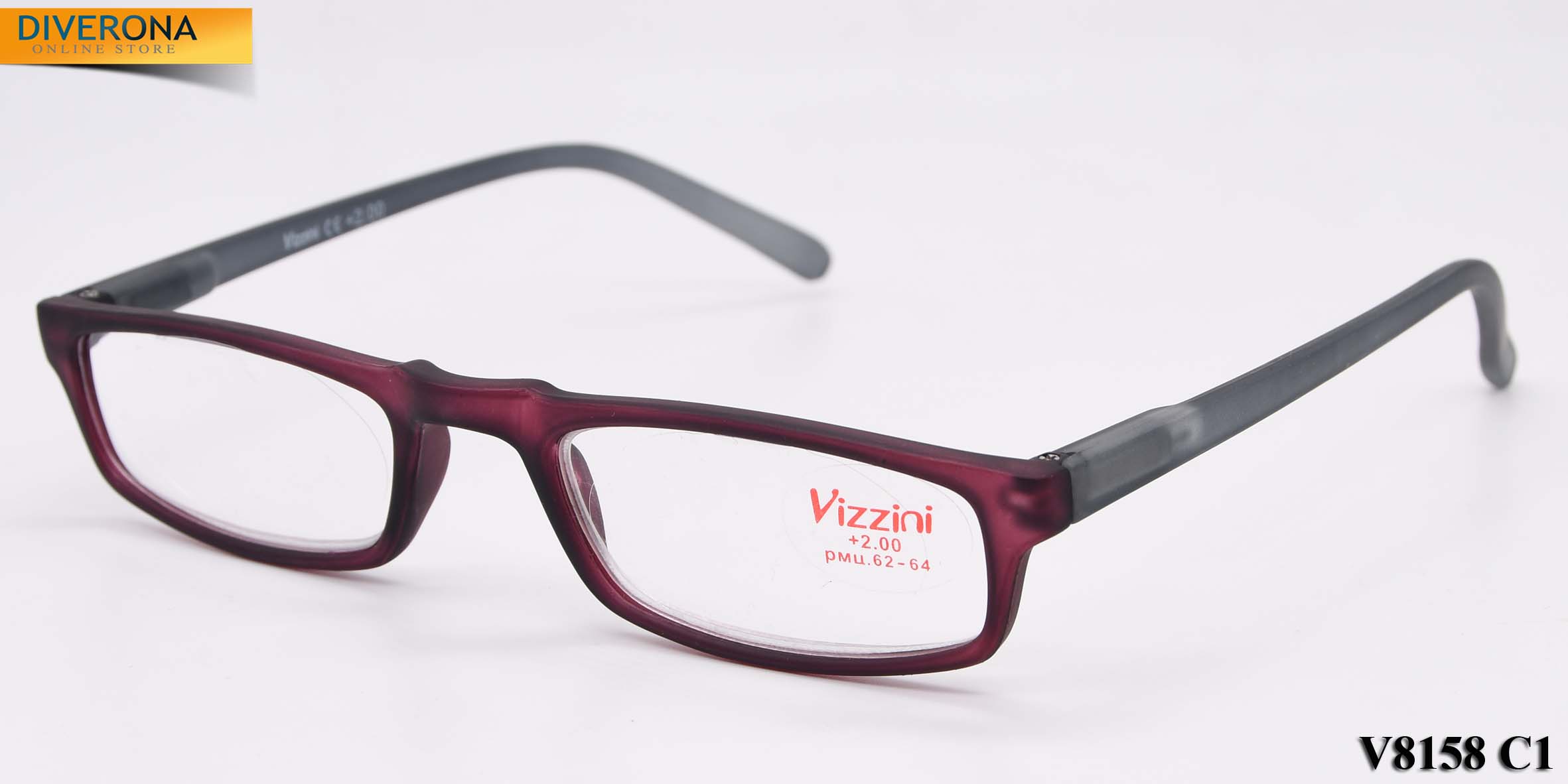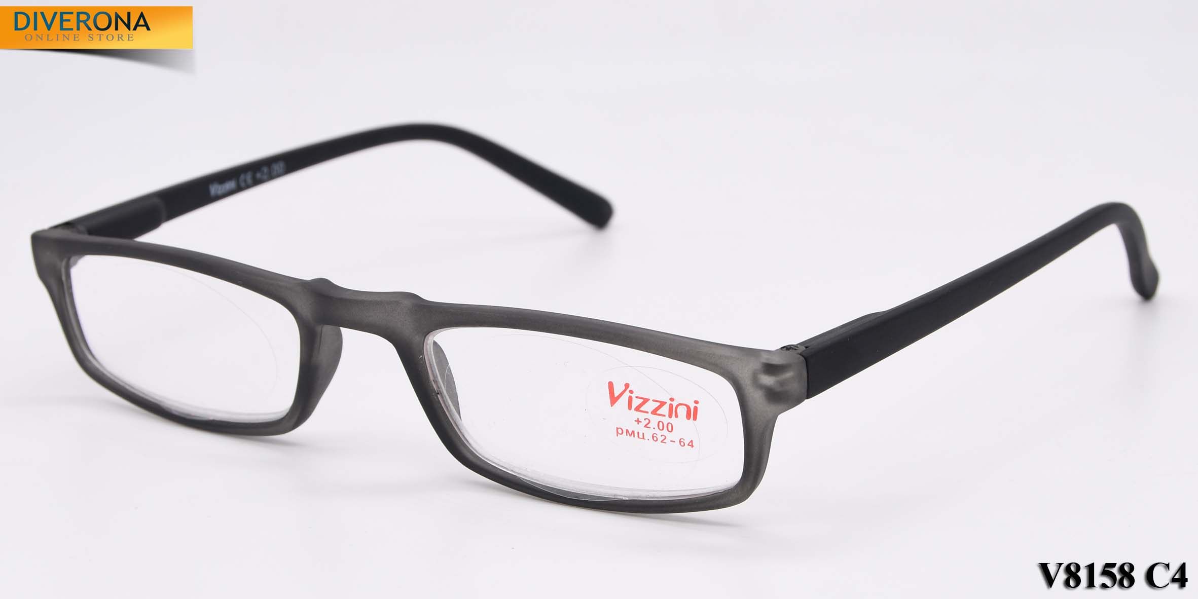 Plastic frame glasses with/without artificial leather case VIZZINI V8158, from +0.75 to +4,00 (step 0,25)