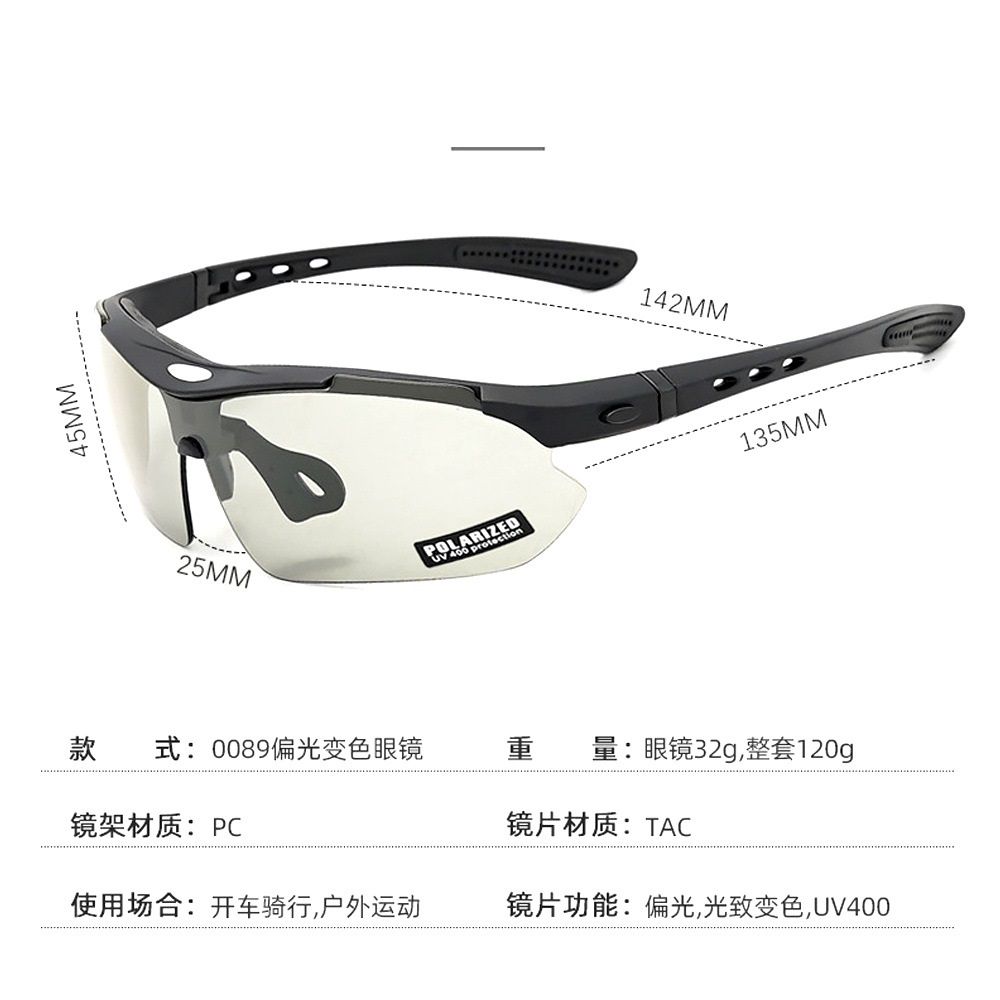 Safety shockproof tactical polarized photochromic goggles, 3-lens set, 0923-1-DX