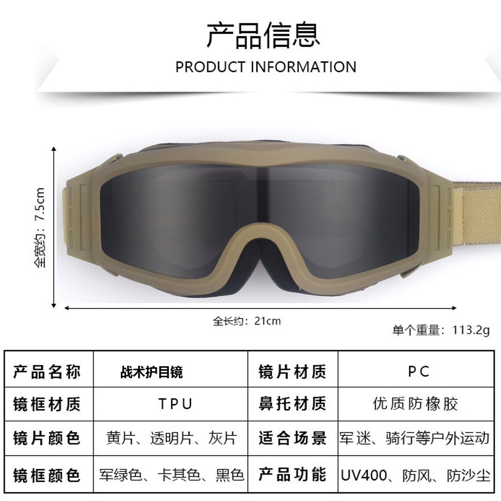 Safety shockproof tactical anti-fog goggles, set with 3 lens, 战术-ESCS海绵-套装-DX