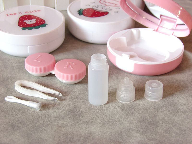- Set: 2 lens containers, tweezers, lens cleaning stick, mirrow and a bottle for solution