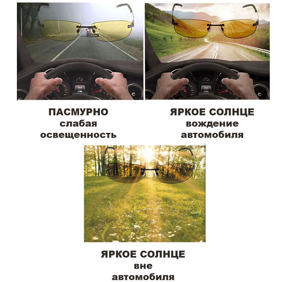 • Рекомендации по применению: для прогулки на ярком солнце, вождение автомобиля, работы за компьютером, и другими электронными приборами, излучающими синий свет (в помещении линзы становятся светлыми, что позволяет не менять пару очков)