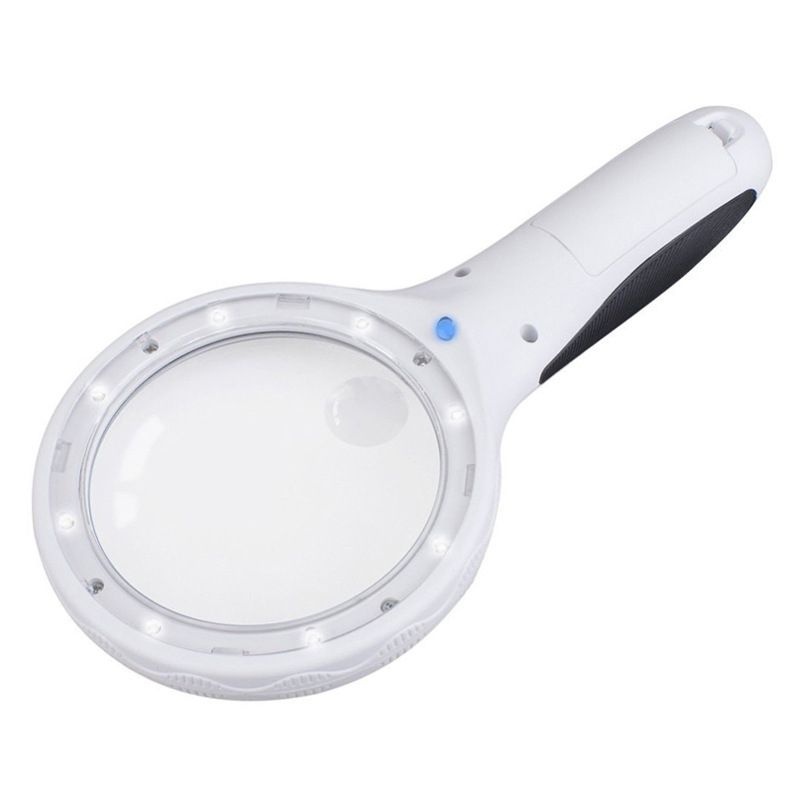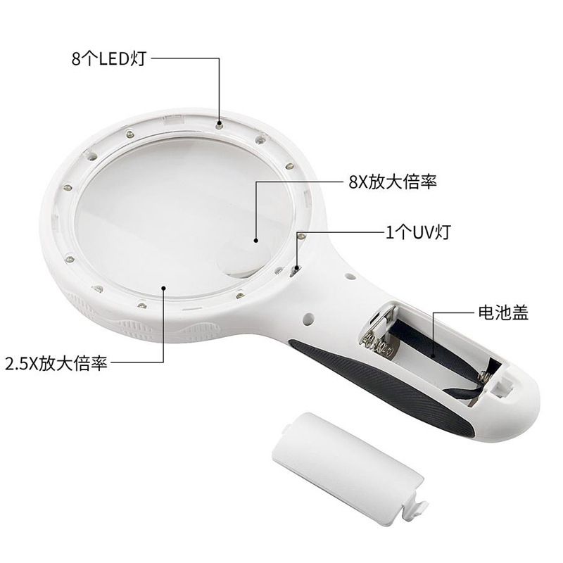 Лупа с универсальной подсветкой, увеличительное стекло с ручкой 9588-XX, диаметр 90 мм, увеличение: 2,5Х, 8Х