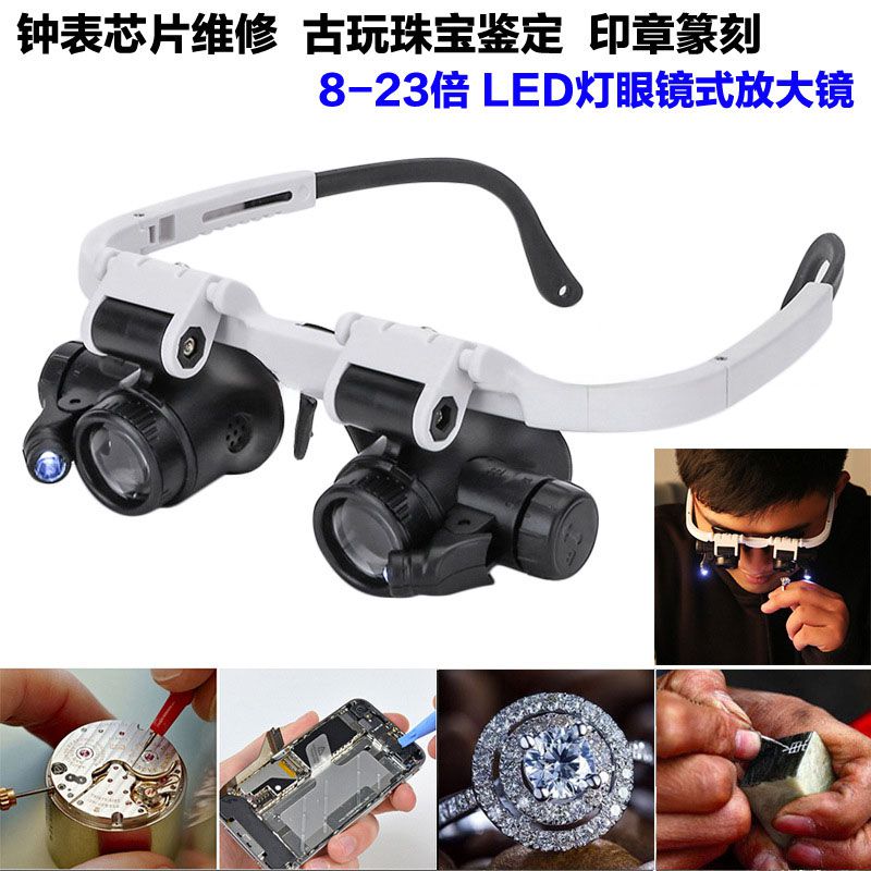 Лупа бинокулярная с подсветкой, увеличительное стекло с креплением на голову 9892H-1-XX, увеличение: 8Х, 15Х, 23Х
