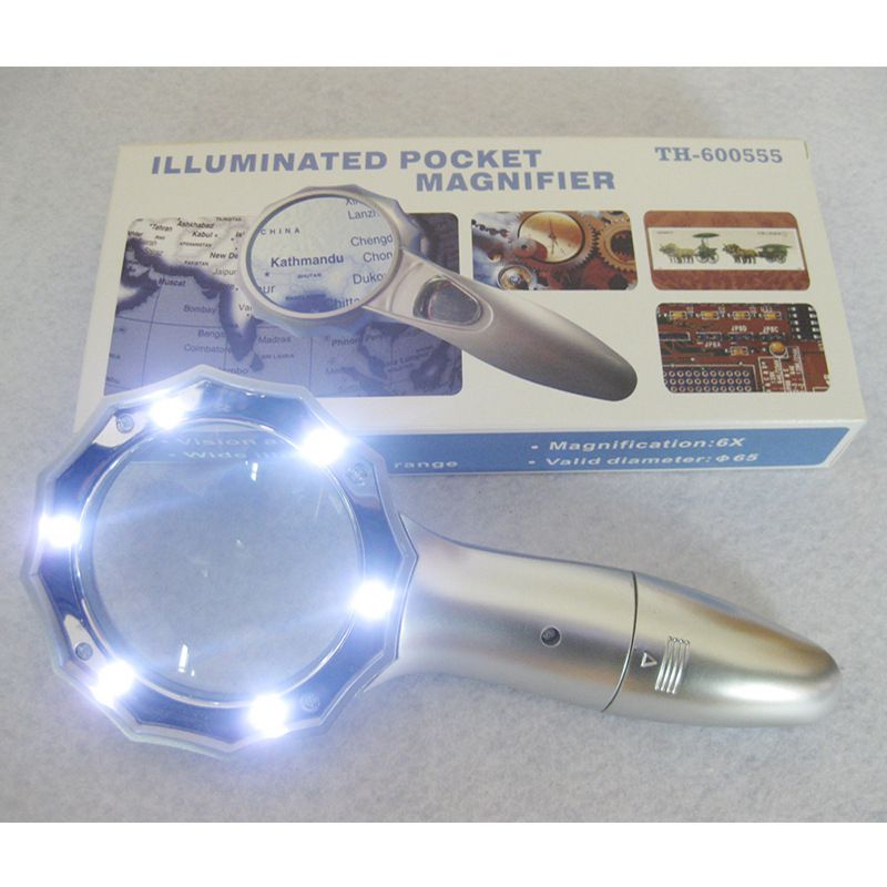Magnifier with universal backlight, magnifying glass with handle 600555-XX, diameter: 65 mm, magnification: 6X