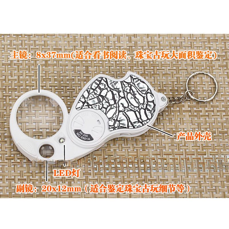 Folding magnifier with universal backlight 6901A-XX, dimensions: ⌀37 mm, ⌀12 mm, magnification: 8X, 20Х