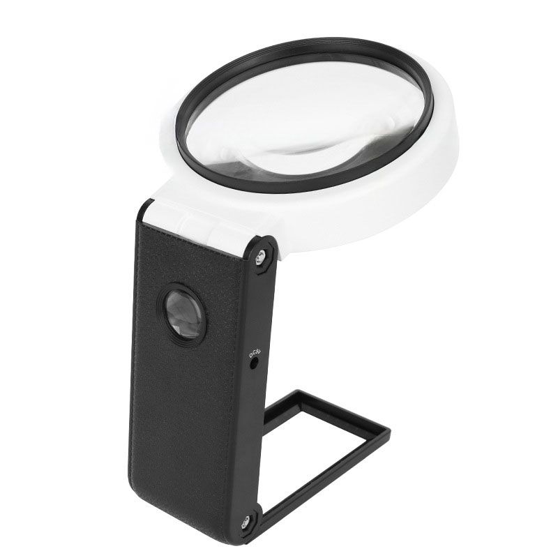 Folding magnifier with universal backlight, magnifying glass with handle 7018-BD-XX, diameter 90 mm, magnification: 10X, 25X