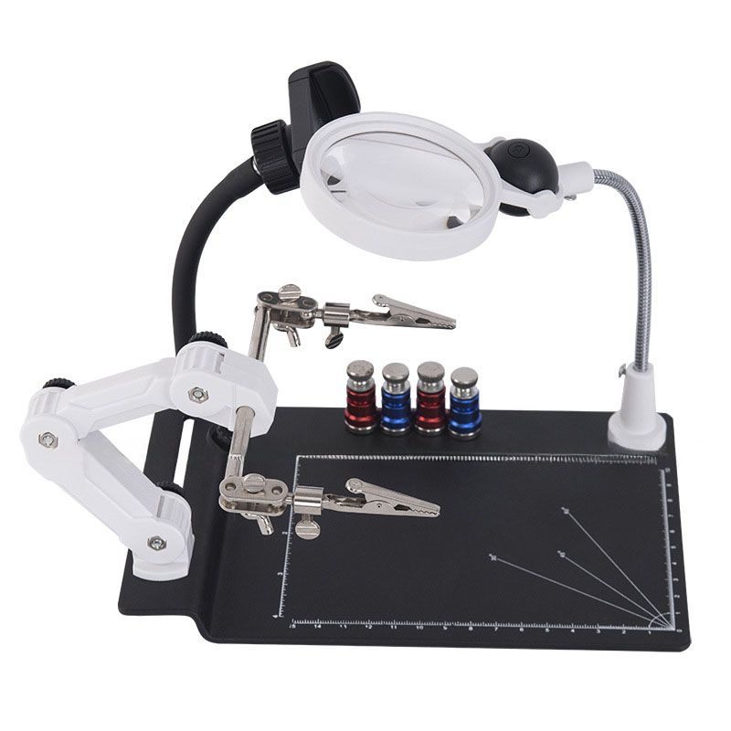 The desktop magnifier is a multifunctional device, indispensable for soldering, assembling small parts, jewelry work and other tasks that require high precision. Equipped with several magnification levels, it allows you to examine even the tiniest elements in detail. The main feature of the model is the locking holders that provide stable fixation of objects, freeing your hands for work. The kit includes replaceable attachments that expand the functionality of the device. Thanks to the robust design and stable base, the magnifier is reliable and easy to use. The perfect choice for craftsmen, radio amateurs and jewelers who need a precision tool for detailed processing.