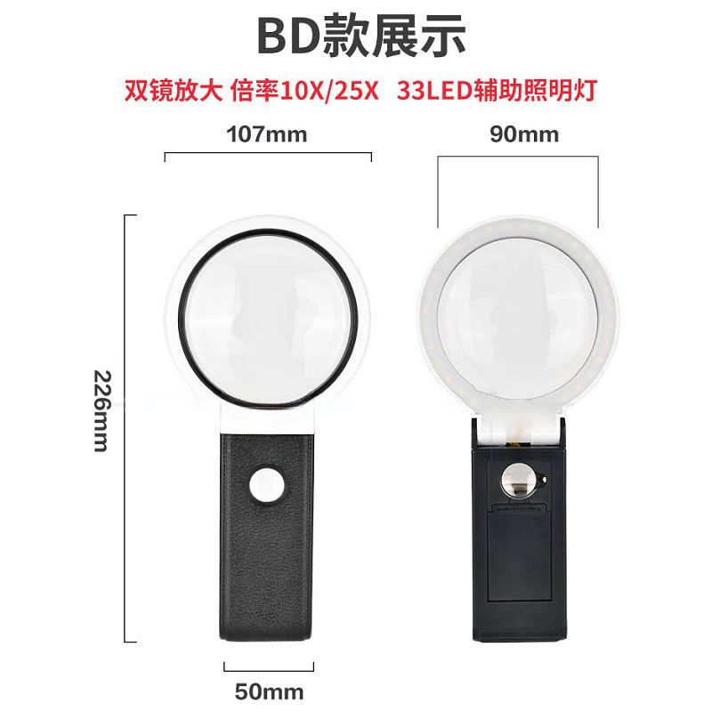 - Magnification: 10X (main lens), 25X (additional lens)