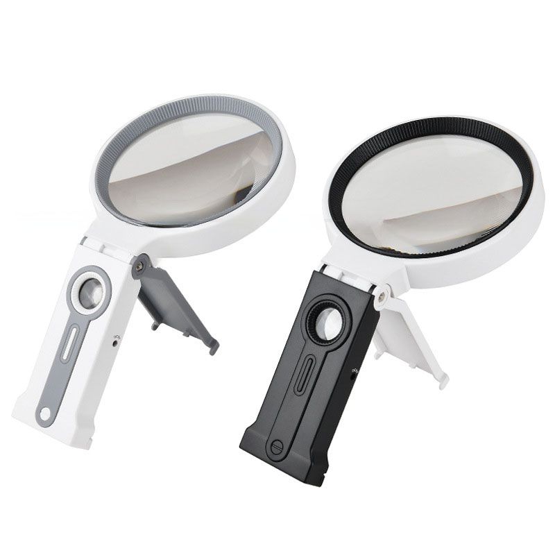 Folding magnifier with universal backlight, magnifying glass with handle 7068AD-XX, diameter 90 mm, magnification: 10X, 25X