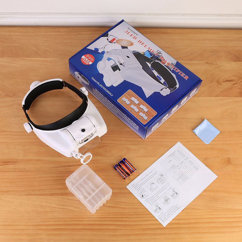 The binocular magnifier is suitable for various works with small details. The special design allows you to attach the magnifier to your head and free your hands. The magnifier has a LED backlight, the angle of which can be changed.