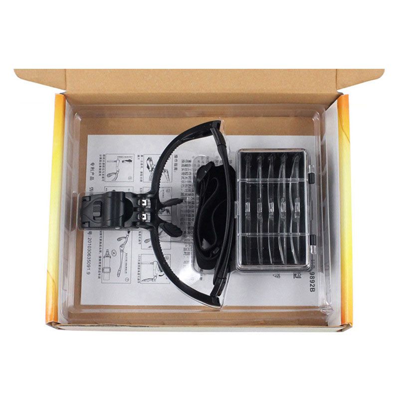 The binocular magnifier is suitable for various works with small details. The special design allows you to attach the magnifier to your head and free your hands. The magnifier has a LED backlight, the angle of which can be changed.