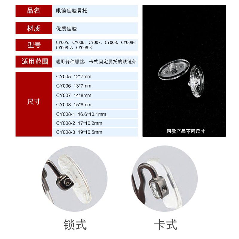 Носоупор для очков из материала PVC CY078, CY079, CY080, размер 10*6/13.5*7.5 мм, под винт и защёлку