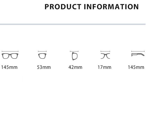 - Размер: ширина линзы - 53 мм, мост - 17 мм, длина заушника - 145
